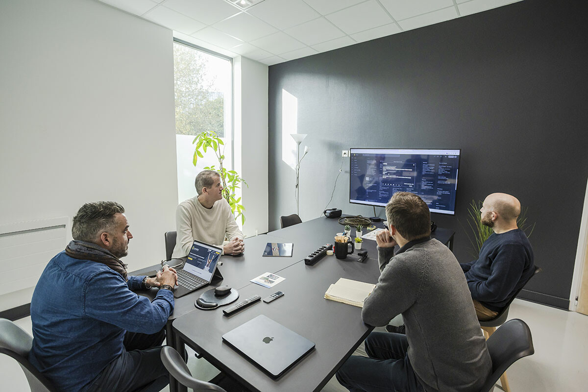 Nous possédons également une salle de réunion équipée pour vous recevoir dans des conditions optimales. Table de réunion, écran géant, visioconférence, … Un cadre parfait pour le démarrage d’une collaboration avec notre agence web. N’hésitez pas à nous solliciter pour y prendre un petit café et discuter de vos besoins de communication sur internet.
