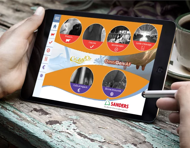 Cette application web offline permet de promouvoir le nouveau produit de la gamme Sanders : Omnigen-AF. La technologie utilisée permet de consulter les données de l'application sans avoir accès à Internet.