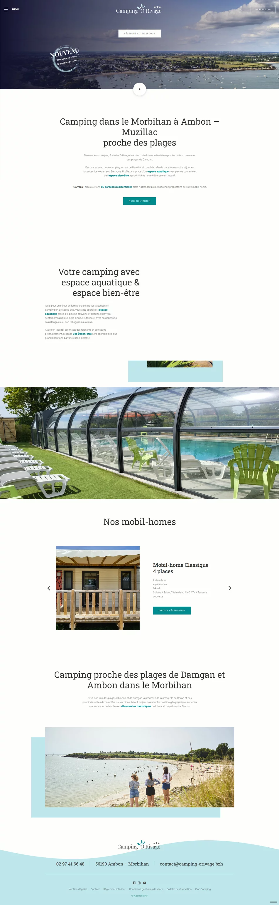 - Site Internet WordPress : Le site du Camping O'Rivage a été développé par une agence web de Vannes sous WordPress. Nous assurons désormais la mise à jour du CMS ainsi que maintenance globale du site. Notre équipe de développeurs, si elle travaille habituellement dans un environnement Drupal, est complètement familière de WordPress.