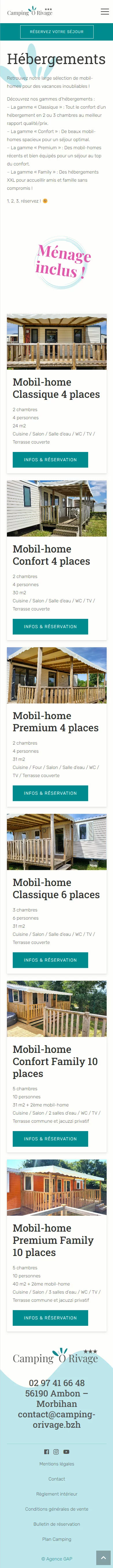- Vitrine en ligne : Ce site Internet recense tous les produits et service proposés par Camping O'Rivage pour les touristes dans le Golfe du Morbihan