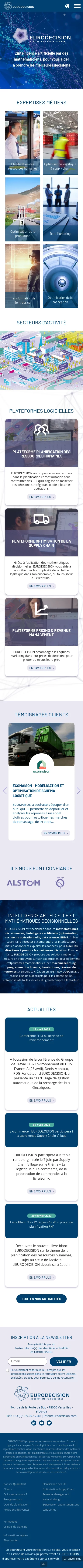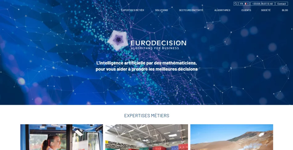 EuroDécision est une entreprise qui conseil des experts métiers grâce à des données obtenu grâce aux mathématiques décisionnels et l'intelligence artificielle.