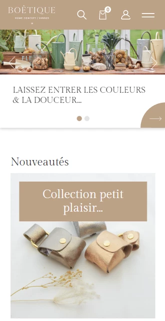 Design et développement de la boutique en ligne BoêtiqueNotre agence web a eu le plaisir de développer la section e-commerce de Boêtique, une très belle boutique physique située dans le cœur de Vannes (56). L'enseigne propose des articles de décoration, du mobilier, de la papeterie, ... sél...