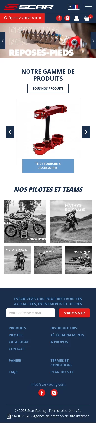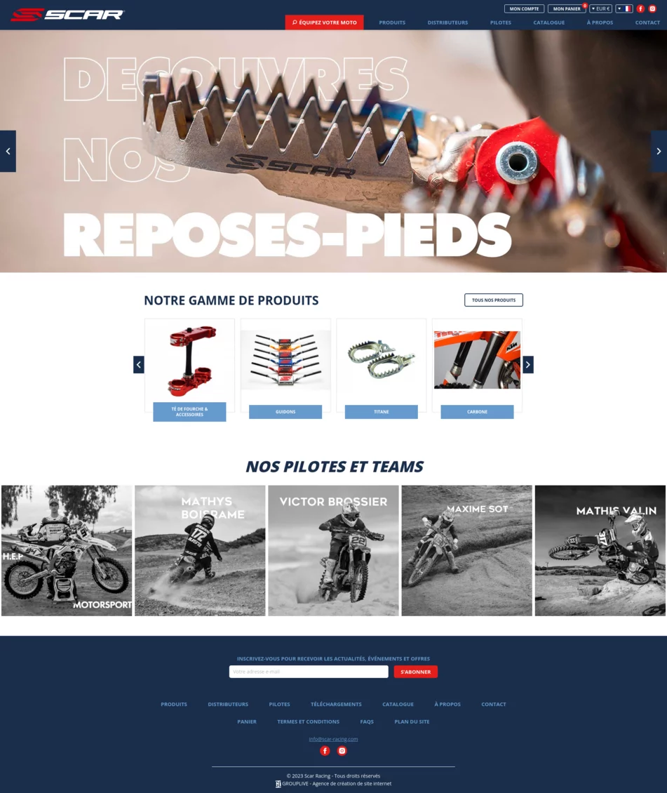Depuis début 2018, la société Scar Racing qui est spécialisée dans la vente en ligne de matériel motocross a confié l'hébergement de son site web e-commerce à l'agence web Grouplive.