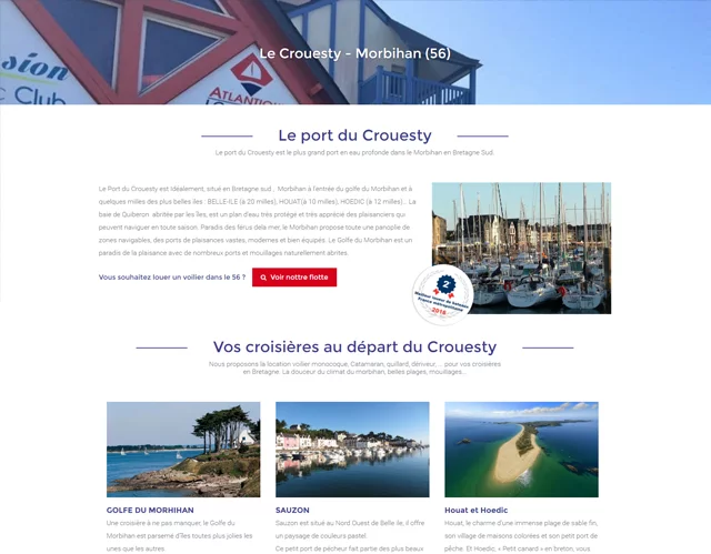 La société de location de voiliers Atlantique Location, située sur le port du Crouesty dans le Morbihan (56), a été sacrée meilleur loueur de voilier de France en 2016. Notre agence a créé le site Internet vitrine qui permet de réserver en ligne un voilier.Caractéristiques du site Internet :Passe...