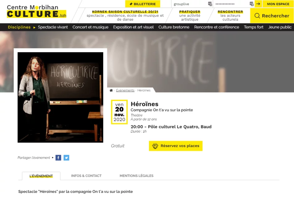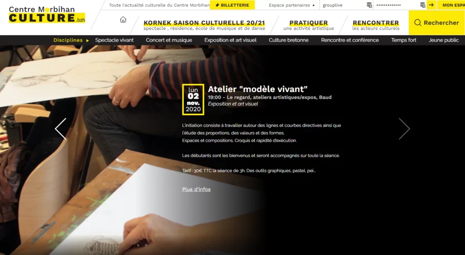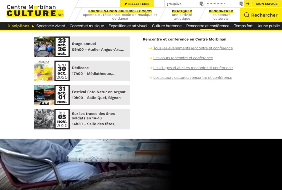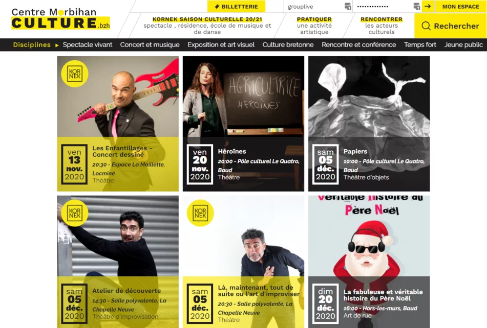 Ce portail Internet a pour but de mettre en avant l’ensemble des événements culturels du territoire portés par Centre Morbihan Communauté mais aussi par les autres acteurs culturels.