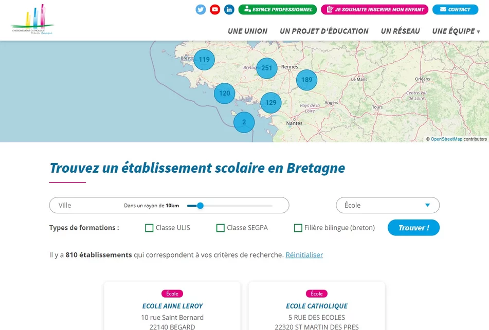Comme L'Enseignement Catholique du Morbihan, faites appel à notre agence web pour le développement d'outils web sur-mesure dans le domaine de la formation et de l'éducation.