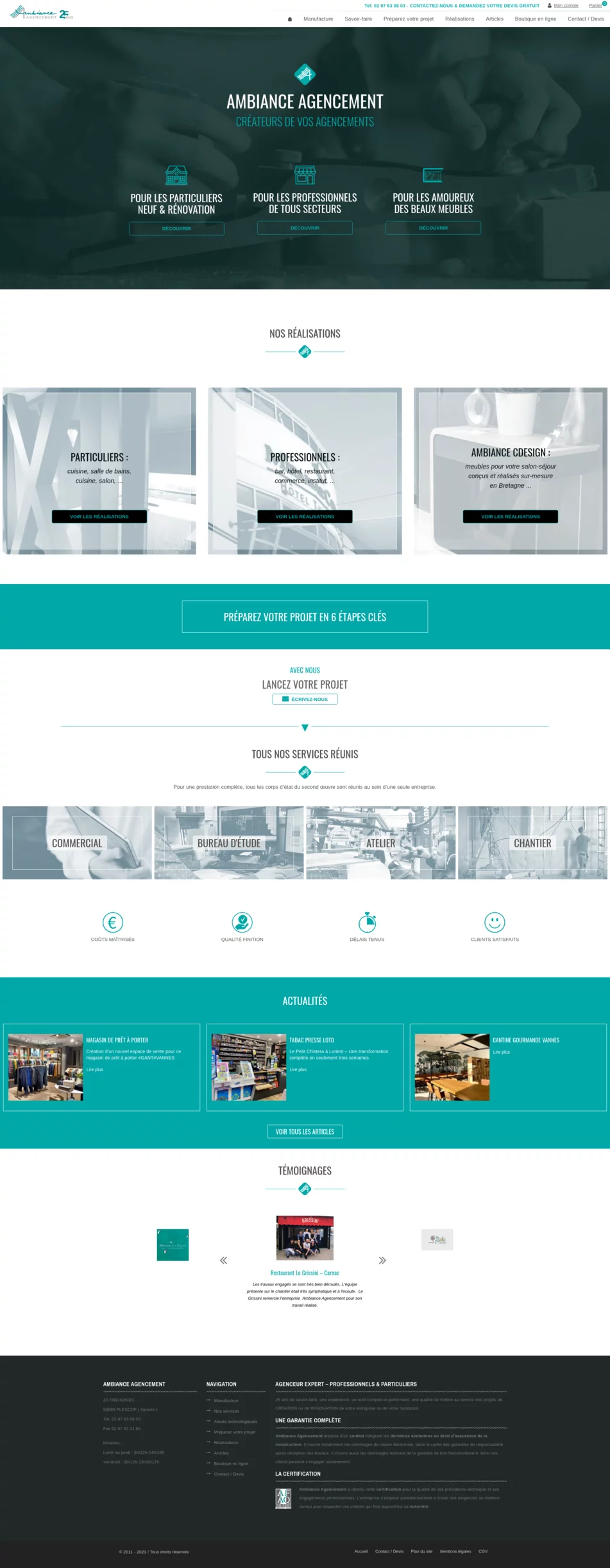 Créée en 1996 à Plescop près de Vannes dans le Morbihan (56), Ambiance Agencement est une entreprise multi-métiers couvrant toute la partie second œuvre : électricité-plomberie, peinture, carrelage-faïence et agencement. En permanente évolution, Ambiance Agencement a fait confiance à notre équipe pour leur concevoir un site web venant répondre à leurs besoins multiples avec un espace Ambiance Agencement faisant office de site vitrine dédié à l'offre de services et un espace Ambiance CDESIGN doté d'un e-shop permettant de commander des meubles personnalisés.
