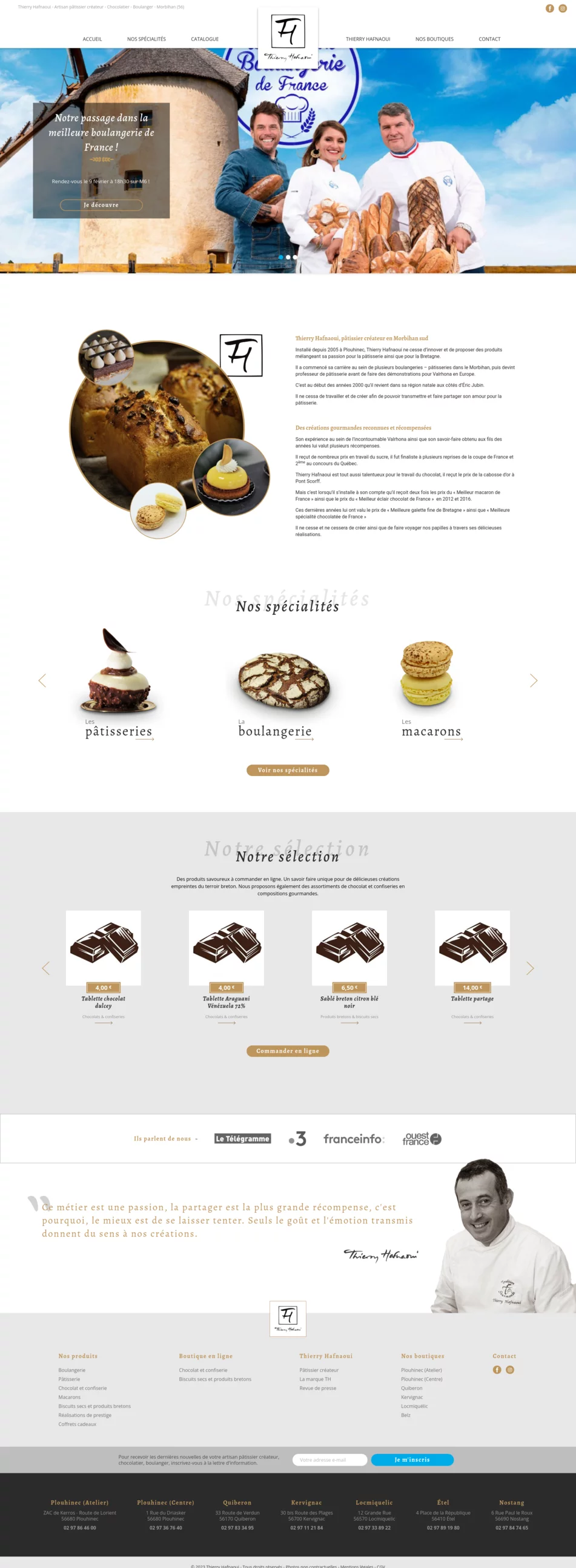 Installé depuis 2005 à Plouhinec, Thierry Hafnaoui ne cesse d’innover et de proposer des produits mélangeant sa passion pour la pâtisserie ainsi que pour la Bretagne. Depuis il ne cessa de travailler et de créer afin de pouvoir transmettre et faire partager son amour pour la pâtisserie.