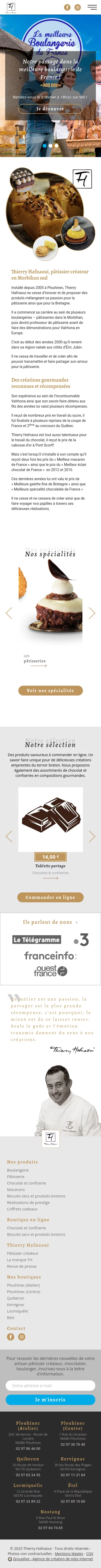 Installé depuis 2005 à Plouhinec, Thierry Hafnaoui ne cesse d’innover et de proposer des produits mélangeant sa passion pour la pâtisserie ainsi que pour la Bretagne. Depuis il ne cessa de travailler et de créer afin de pouvoir transmettre et faire partager son amour pour la pâtisserie. Pour s...