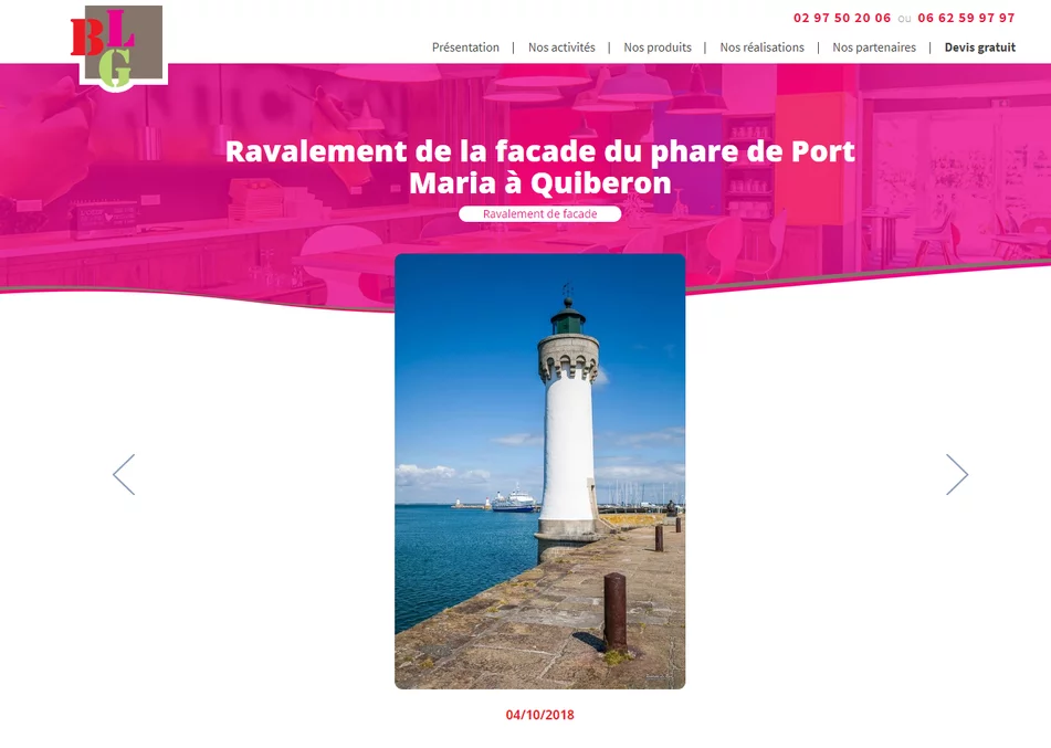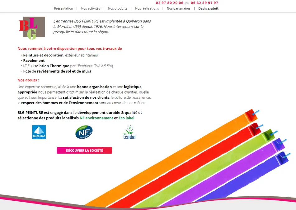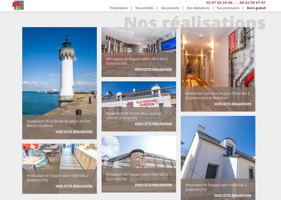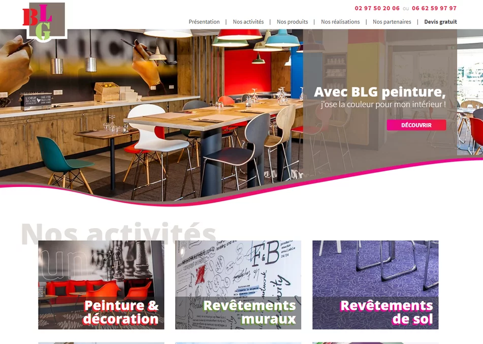 Blg Peinture est spécialiste de la peinture/décoration, extérieur et intérieur, du ravalement et de la pose de revêtement sol et mur. Notre agence de création de sites Internet a organisé la refonte du site web. Celui-ci est totalement optimisé pour une navigation mobile et permet aux internautes de consulter les activités de la société BLG.