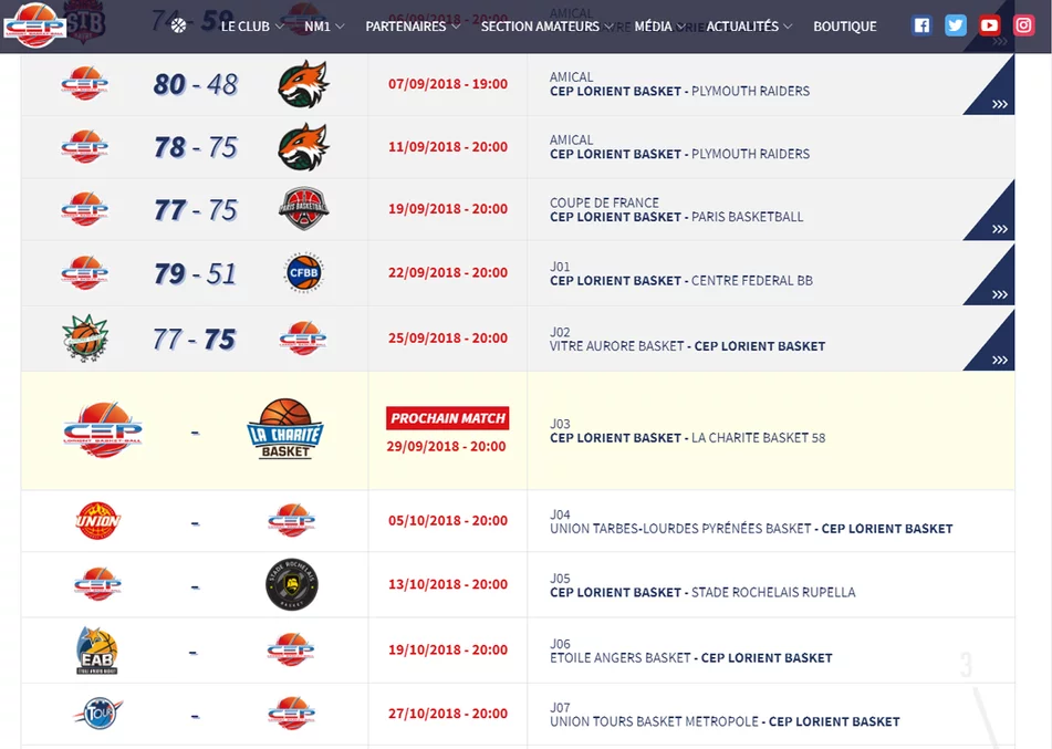 Grouplive, partenaire du Club, a crée le site Internet du CEP Lorient Basket Ball. Ce site Internet vitrine permet de suivre l'actualité du club et de l'équipe Pro. Grouplive a développé un module web qui permet d'enregistrer en temps réel le classement et les résultats provenant des sites offici...