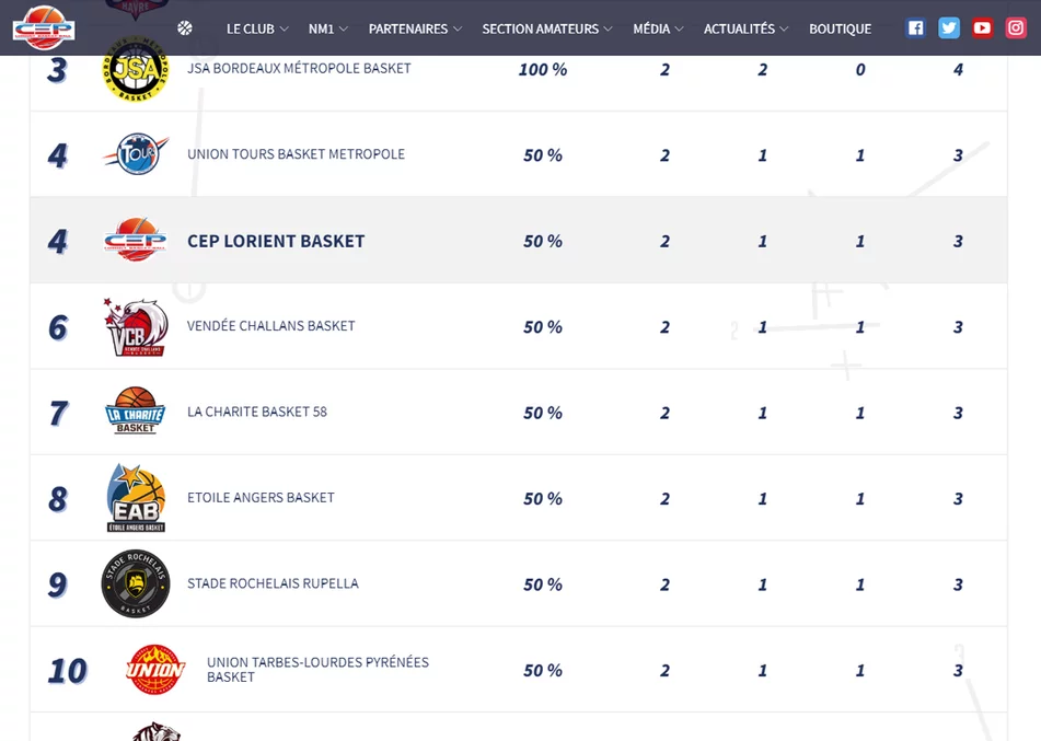 - Système de classement et calendrier connecté avec le site de la FFBB
