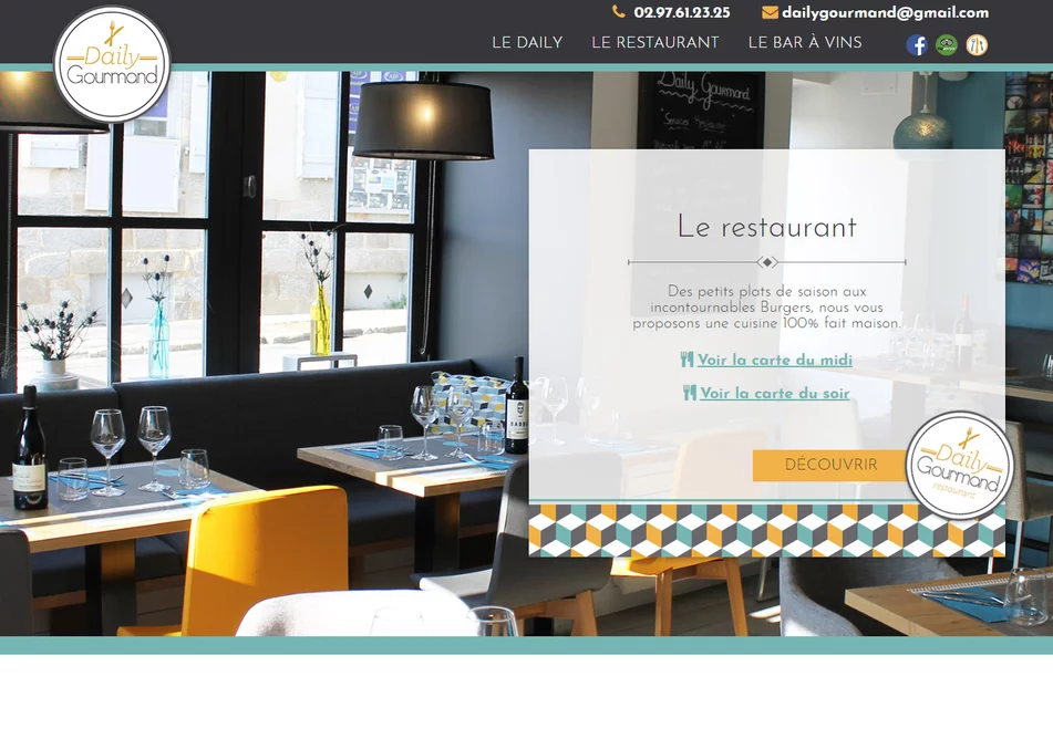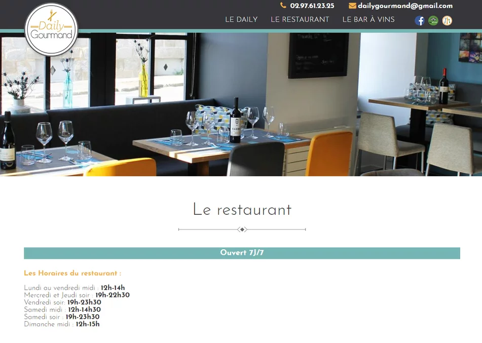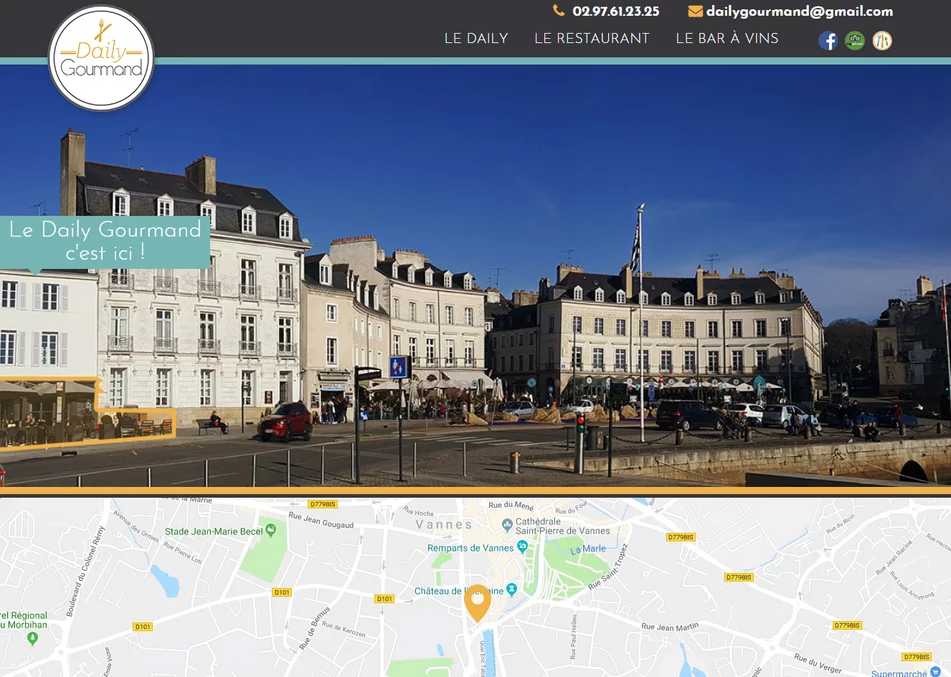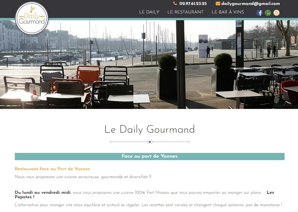 Le site Internet du Daily Gourmand, restaurant à Vannes 56 permet aux internautes de consulter les menus et contacter le restaurant pour une réservation. Notre agence a aussi travaillé avec le Daily Gourmand sur de l'affichage multimédia (PLV) .
