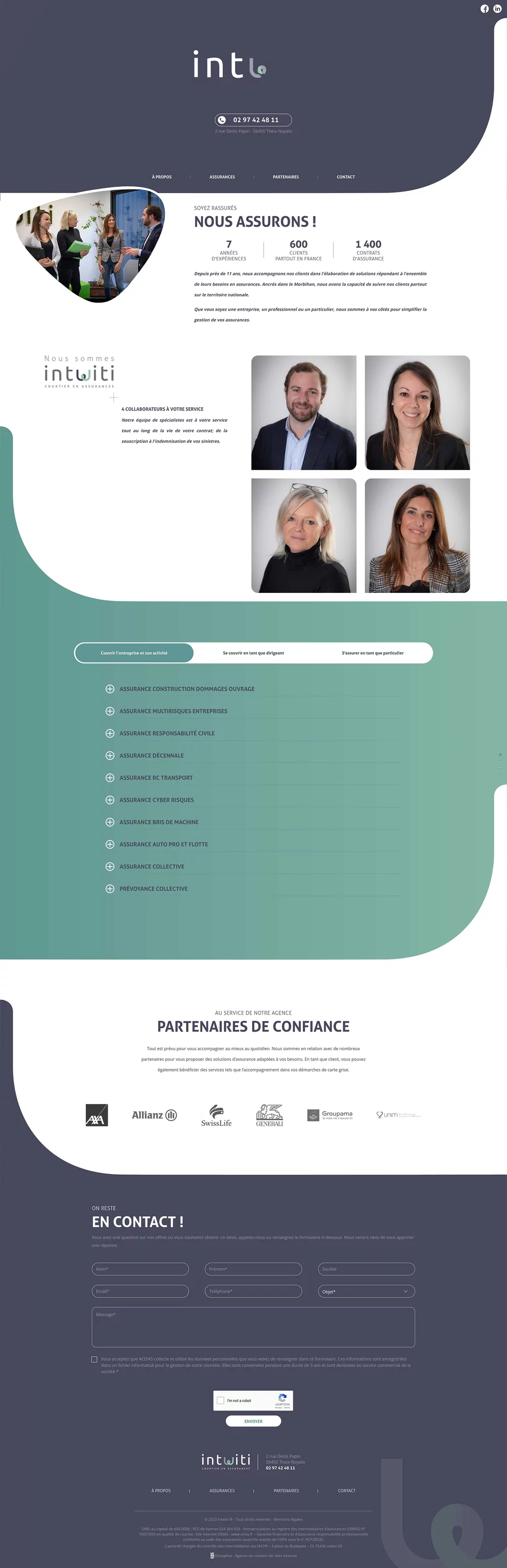 Chez Grouplive, nous sommes dédiés à la création de sites Internet sur mesure qui reflètent les besoins uniques de nos clients. Nous sommes ravis de mettre en lumière l'un de nos projets récents, le site Internet d'Intwiti. Forts de plus de 10 ans d'expérience, Intwiti accompagne ses clients en proposant des solutions complètes en matière d'assurances. Basés dans le Morbihan, ils ont la capacité d'assister leurs clients partout en France. Que vous soyez une entreprise, un professionnel ou un particulier, Intwiti est là pour simplifier la gestion de vos assurances.