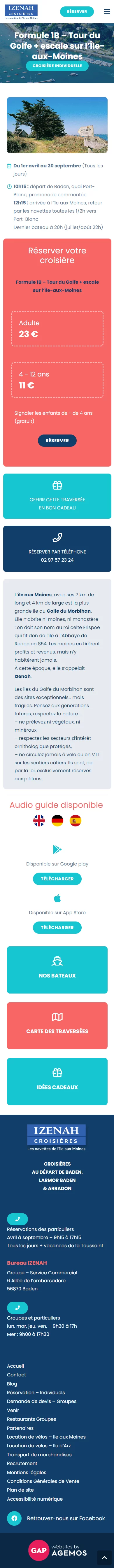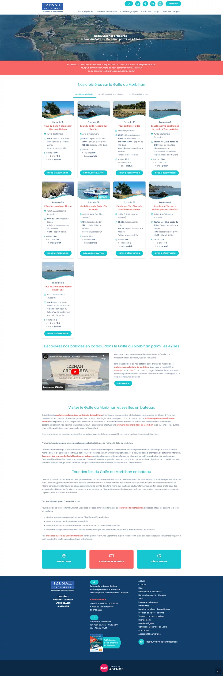 - Vitrine en ligne : Ce site Internet recense tous les produits et service proposés par Izenah et notamment les croisières et liaisons régulières dans le Golfe du Morbihan