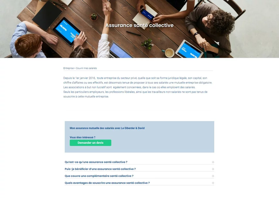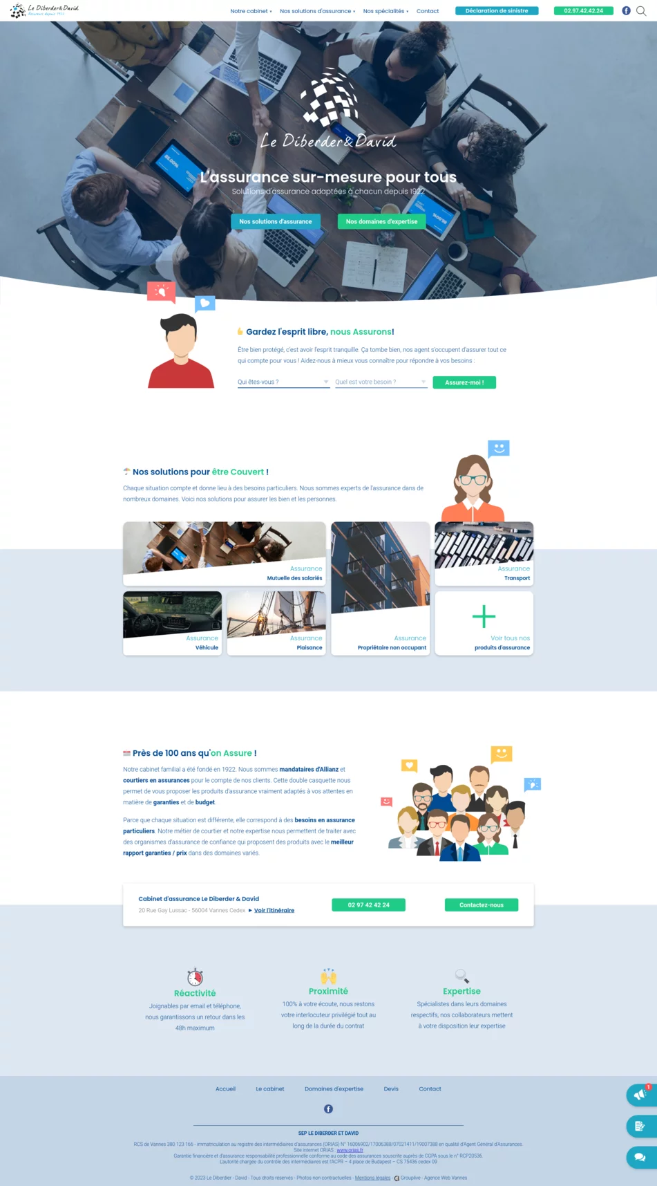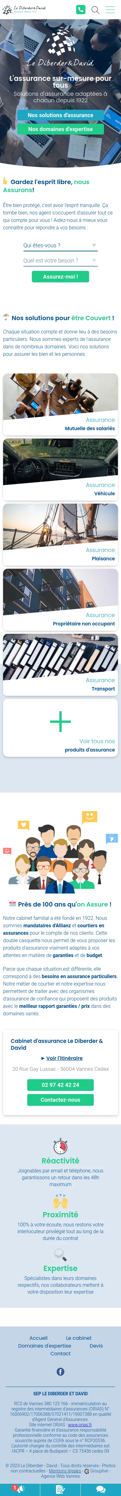 Mandataires d'Allianz et courtiers en assurances, le cabinet Le Diberder & David a missionné notre agence web pour la création de leur site vitrine. Réalisé avec le CMS Drupal, ce site permet de présenter leur activité et les services qu'ils proposent.