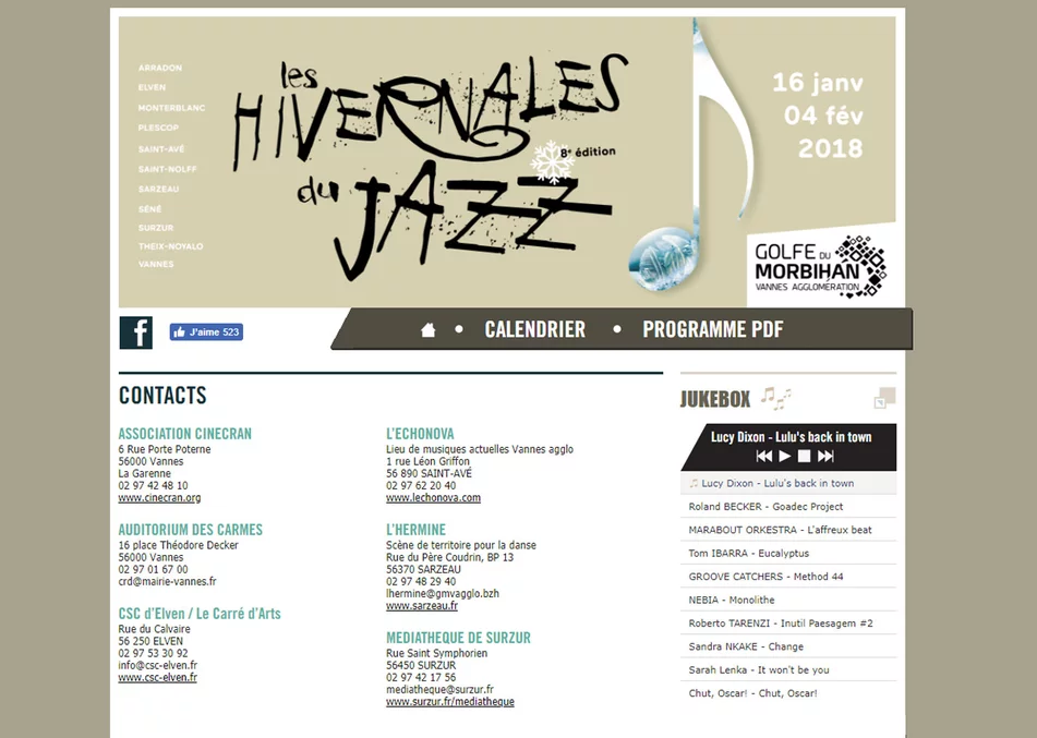 Nouvelle année, nouvelle identité pour Les Hivernales du Jazz à Vannes (56). Une refonte du site par notre agence web basée dans le Morbihan pour Vannes Agglo.