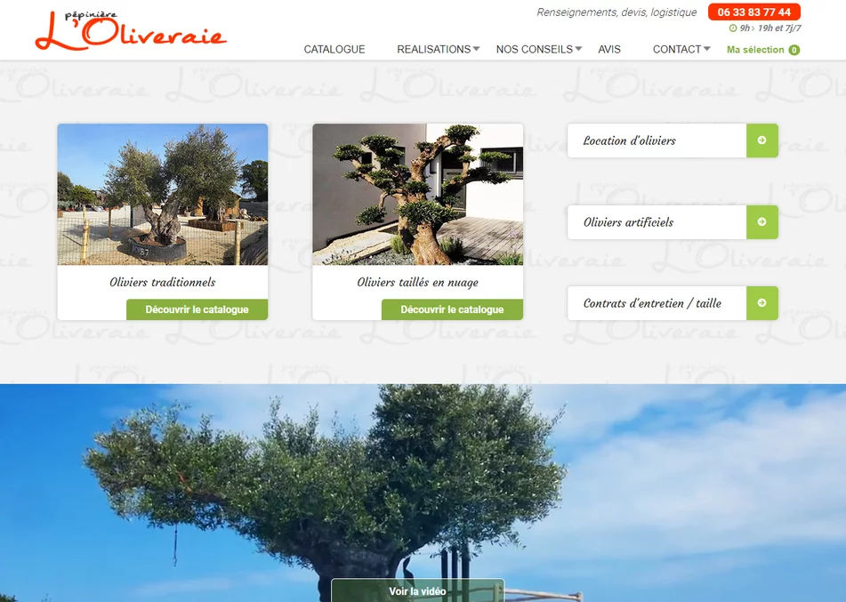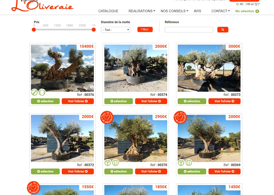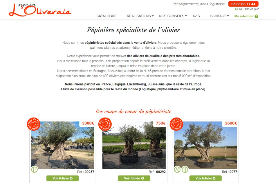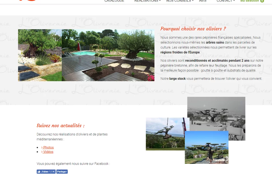 Grouplive a effectué la refonte du site Internet de la pépinière L'Oliveraie située à Muzillac dans le Morbihan (56). Ce site Internet permet de consulter le catalogue d'oliviers de la pépinière. Notre agence web a développé un module web qui permet de faire une sélection de produits afin de demander un devis depuis le le site Internet.
