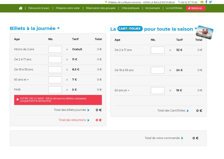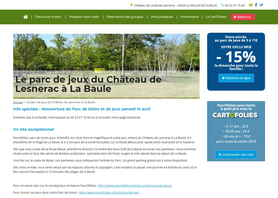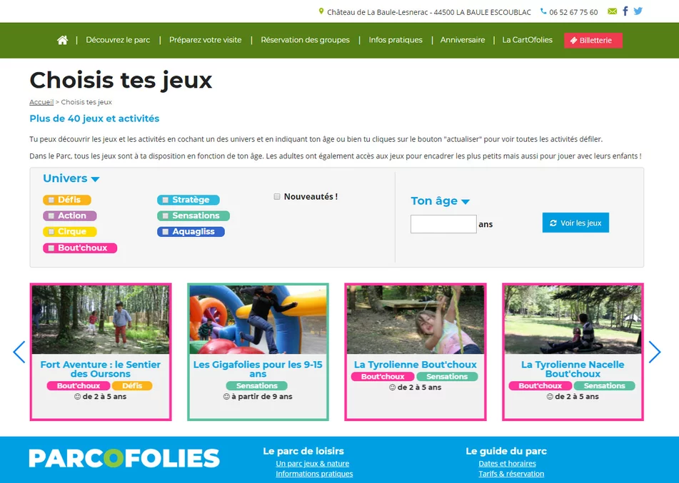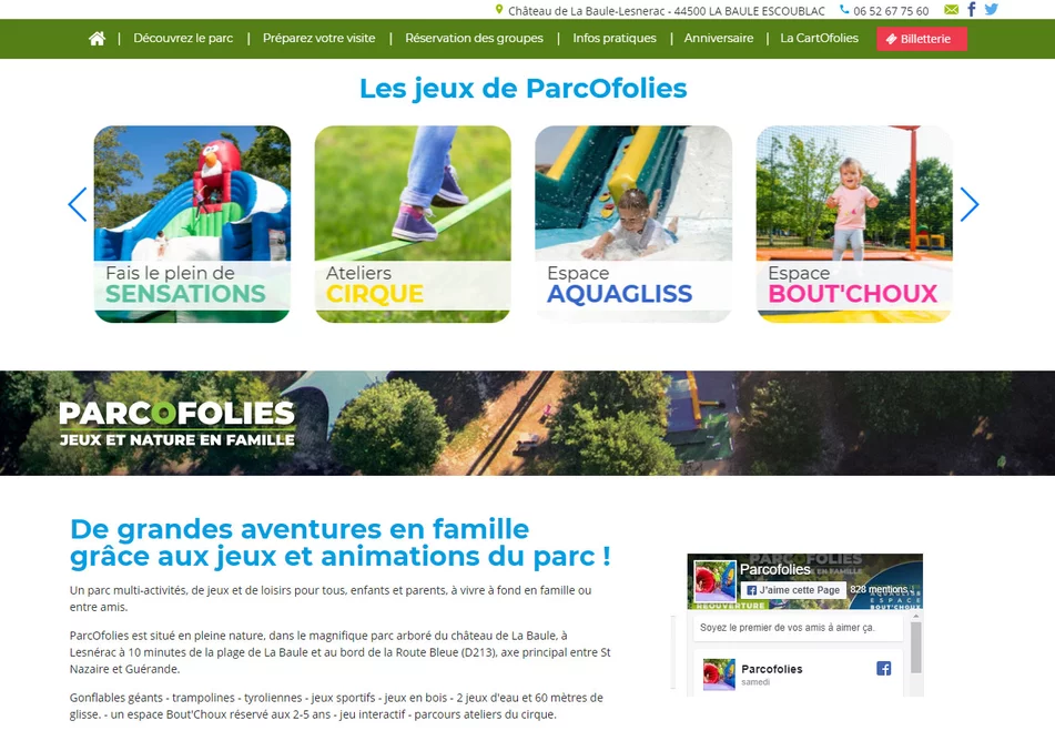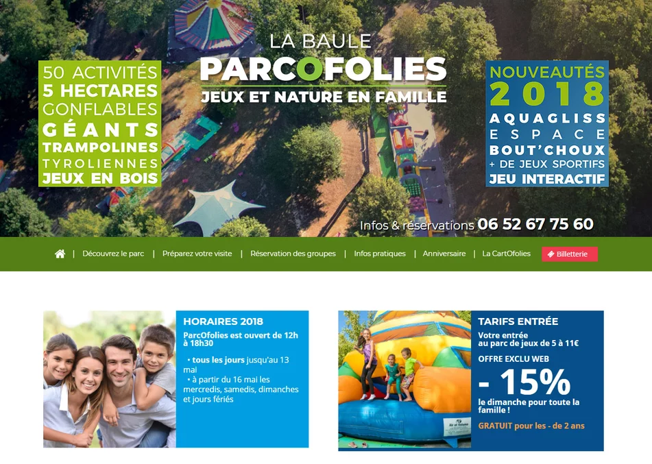 ParcOfolies est un parc de loisir situé à La Baule (44). Le site Internet développé par notre agence web permet de réserver ses billets pour le parc en ligne.