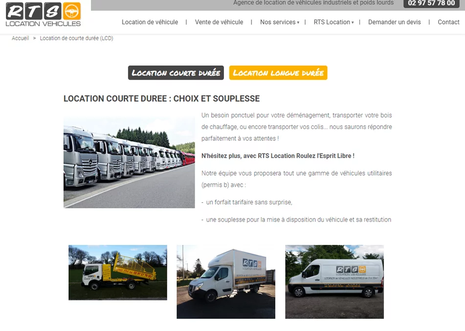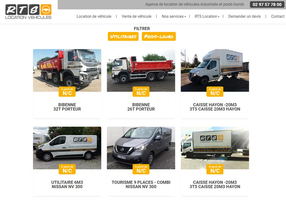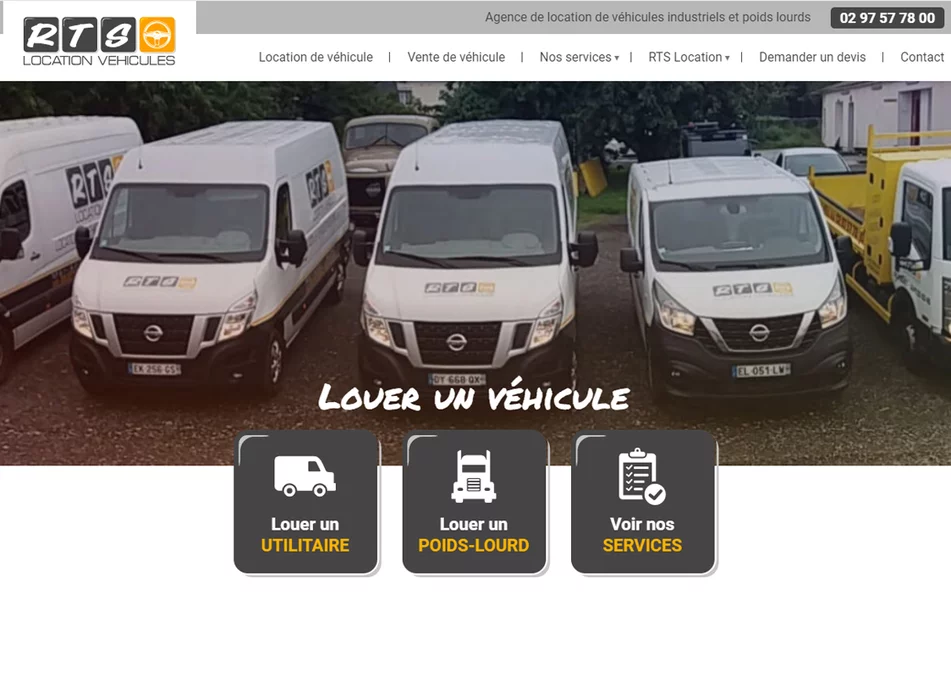 L'agence web Grouplive a crée le site Internet de RTS Location. Ce site Internet permet de consulter la liste des véhicules en location et en vente chez RTS Location. Vous pouvez vous renseignez sur les locations courte et longue durée et faire une demande de devis grâce à un formulaire.