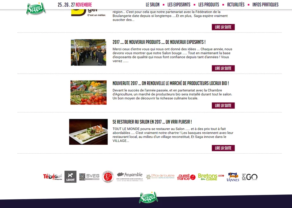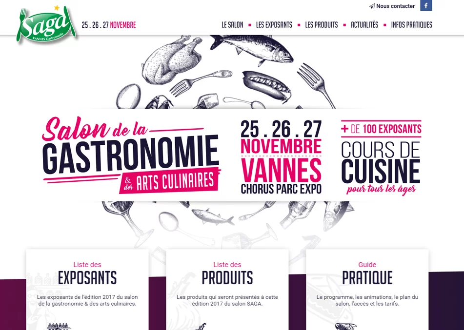 Le salon Saga (pour Salon de la Gastronomie) a encore une fois fait confiance à notre agence web pour la réalisation de son site Internet. En collaboration avec l'agence de communication AndGo, notre studio Grouplive s'est chargé du webdesign, de l'intégration et du développement de la plateforme web. Ce site internet a pour but d'informer les visiteurs du salon sur les animations et autres activités liées à l'événement.