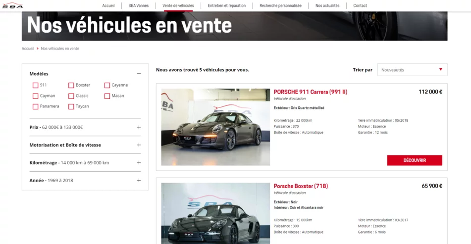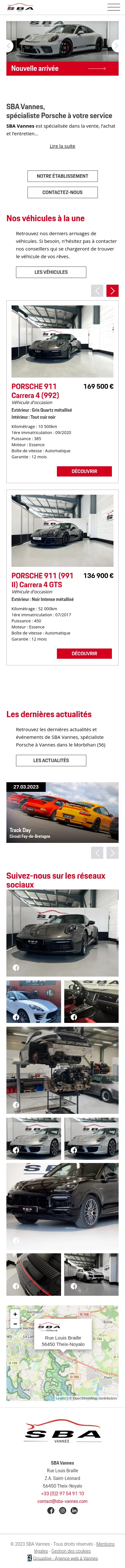 SBA Vannes est une concession dédié à la marque iconique Porsche et une filliale du groupe Ancel Auto. Dans l'idée de promouvoir son activité, de référencer les véhicules en vente, et de gérer les actualités, SBA Vannes a fait appel à nous pour concevoir un site qui leur ressemble.