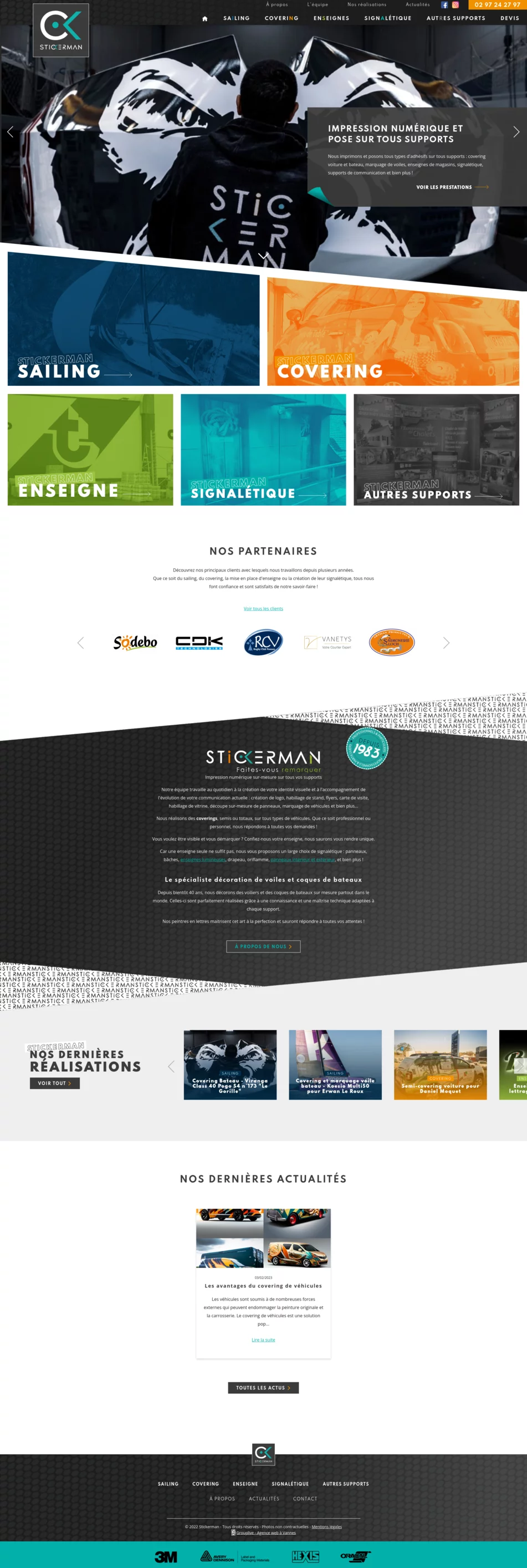 Grouplive à voulu proposer un site internet qui permet à l'équipe de Stickerman de mettre son savoir-faire en avant, en travaillant l’aspect visuel du site ainsi que sa navigation intuitive. Grâce à l’utilisation du CMS Drupal et l’administration développée sur mesure pour Stickerman, il est facile de partager des actualités, les nouvelles réalisations ou de gérer les nouvelles commandes.