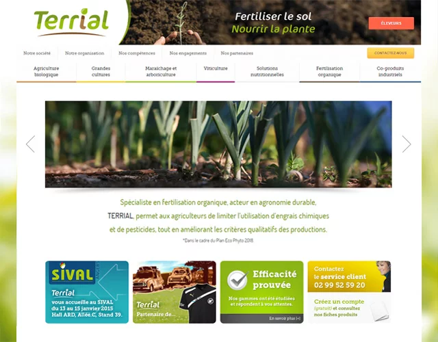 Comme Terrial, faites appel à notre agence web pour le développement de sites internet vitrine dans le domaine de l'industrie et de l'agro-alimentaire.