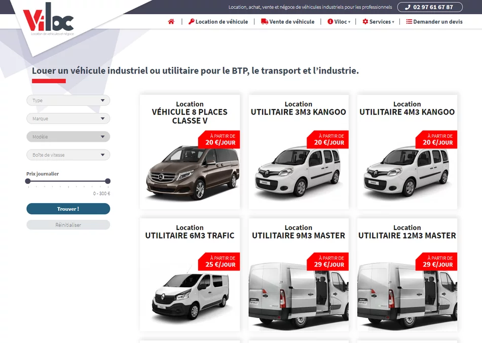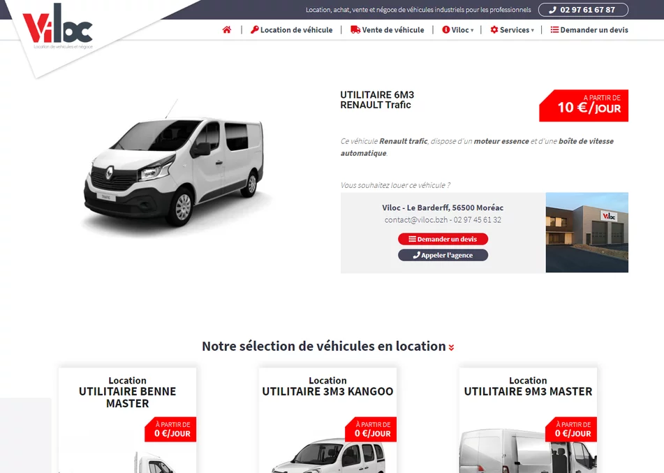 L'agence web Grouplive a crée le site Internet de Viloc à Moréac dans le Morbihan (56) pour le compte du Groupe Eonnet. Ce site Internet permet de consulter la liste des véhicules en location. Notre agence web a développé un module web qui permet de communiquer avec l'outil CRM du loueur. Les stocks de véhicules sont mis à jour en direct sur le site Internet.