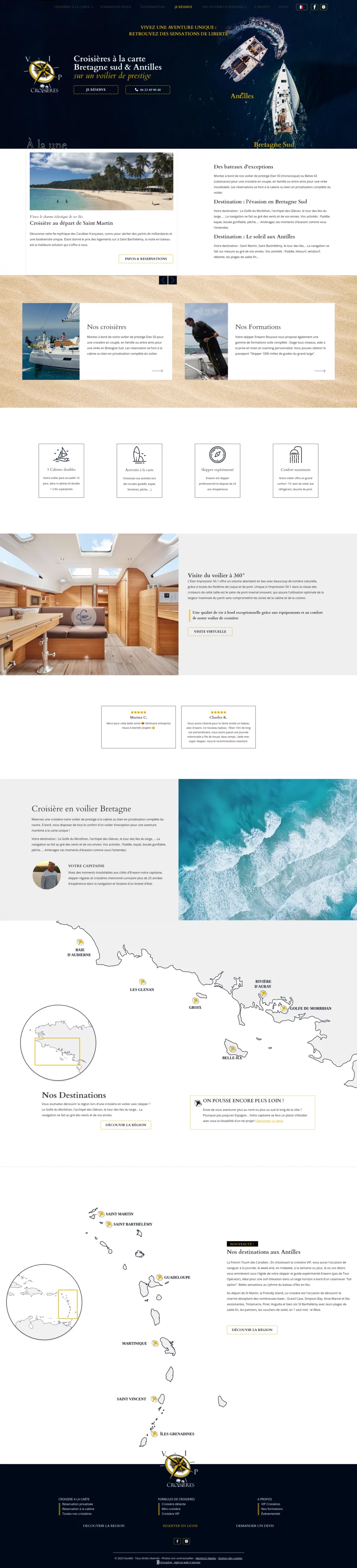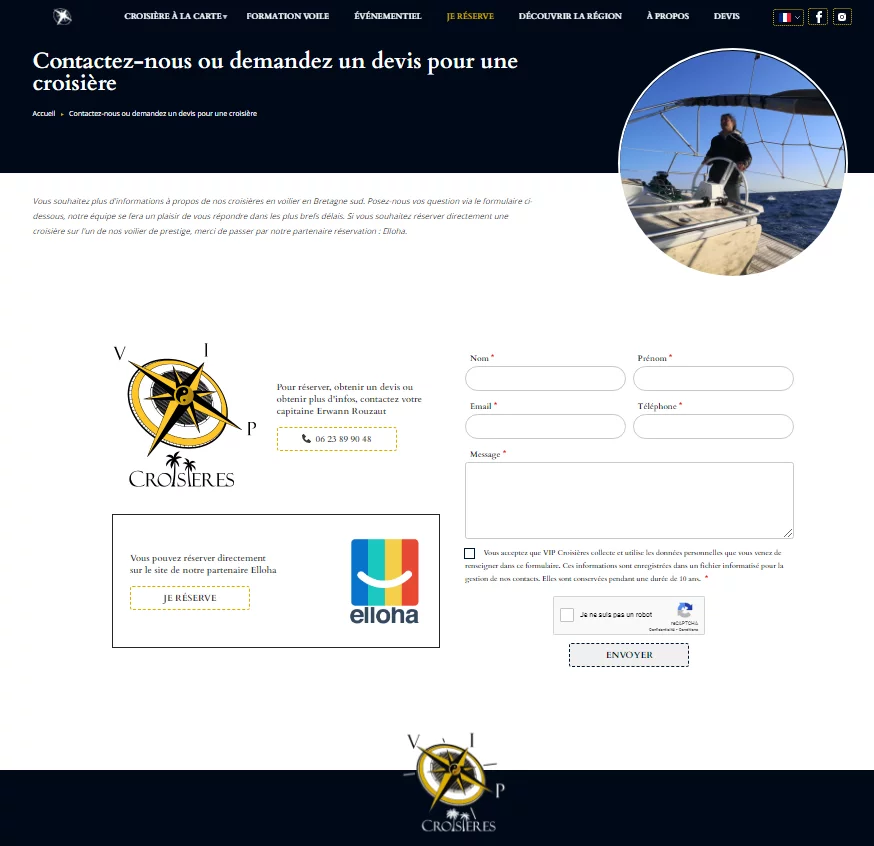 Pour ce site vitrine, notre client, un skippeur professionnel, voulait un site qui lui ressemble. Le design est à la fois très "marin" et moderne. Le site référence toutes les activités proposés par VIP Croisière ainsi qu'une passerelle de reservation.