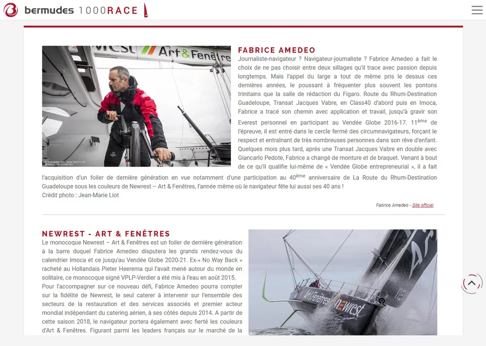 Fonctionnalités du site Internet Bermudes 1000 Race :