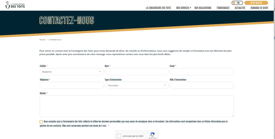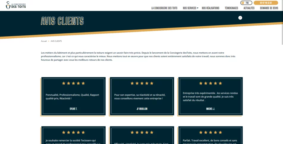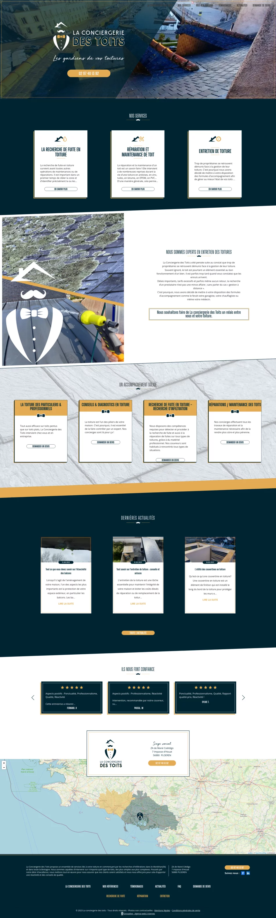 Pour refaire leurs site vitrine, La conciergerie des toits (anciennement Tectoserv)à fait appel a nos services. Nous avons donc opté pour un design moderne et épuré qui permet aux utilisateurs de comprendre rapidement tout ce que propose l'entreprise. Le site référence également les avis et les réalisations qui sont faites par l'entreprise.