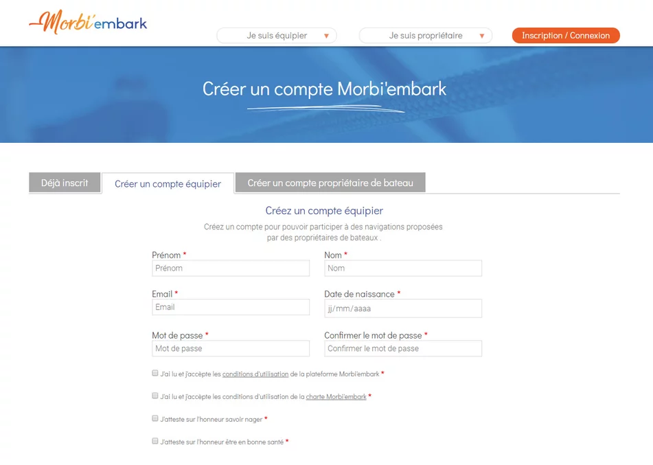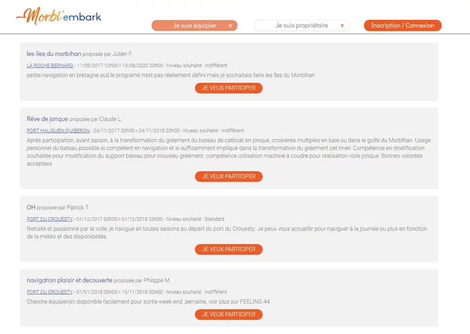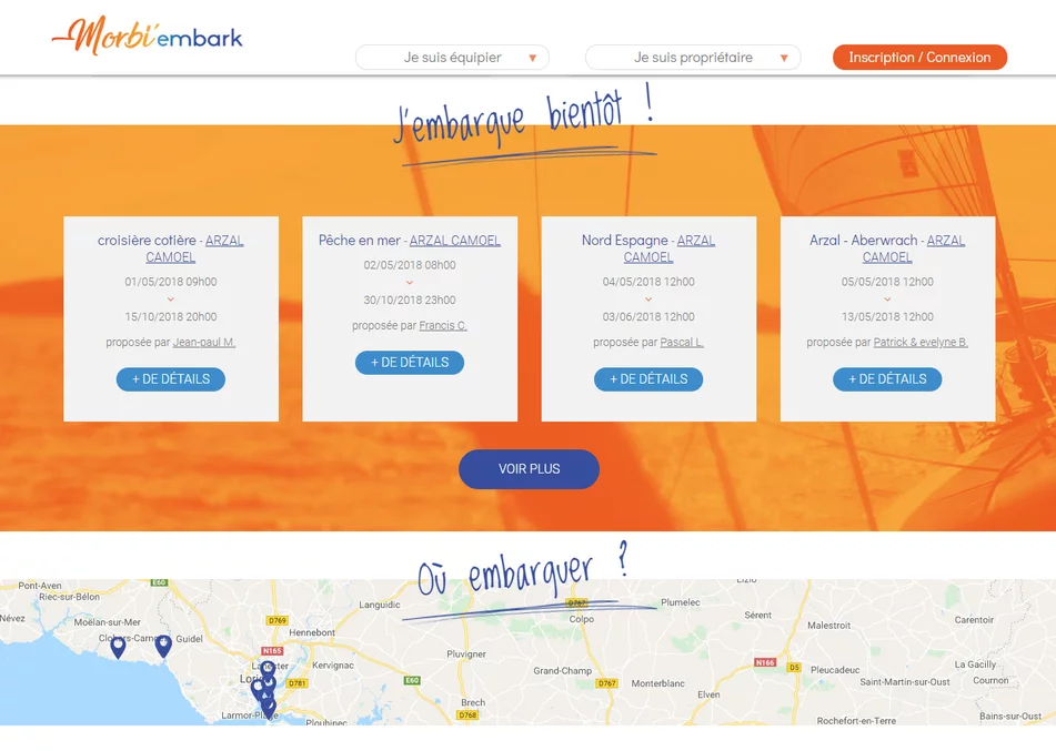 Lançée en 2017, Morbi'embark est une plateforme de mise en relation entre équipiers souhaitant apprendre la navigation et propriétaires de bateaux. À la fois site de réservation et réseau social, la plateforme qui est ouverte aux seuls propriétaires de bateaux du Morbihan compte plusieurs centaines d'utilisateurs. Le service Morbi'Embark est sécurisé et conforme à la directive européenne RGPD (Réglement Général pour la Protection des Données).