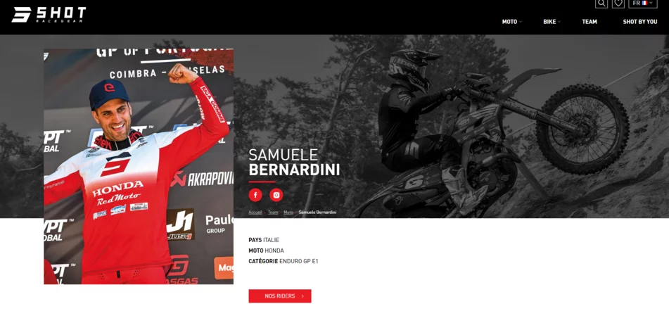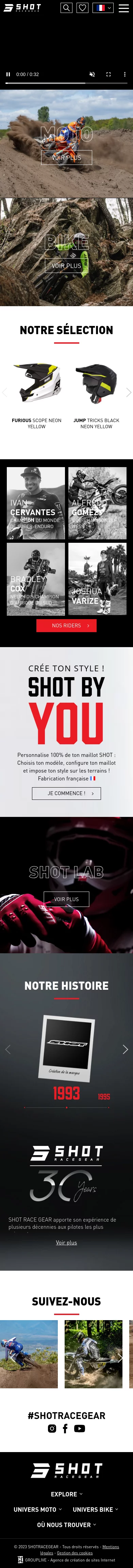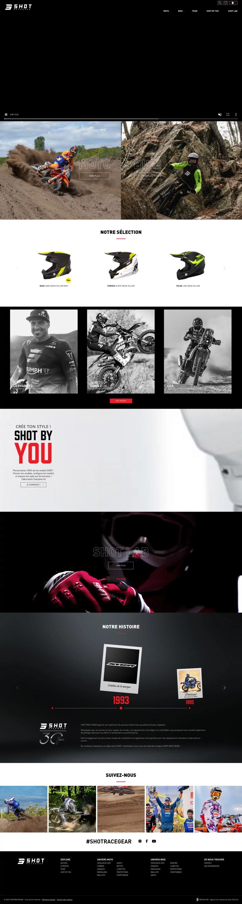 Fondée en 1993, Shot Race Gear est une marque leader du marché motocross en Europe. La marque a développé et vend plusieurs gammes d'équipement avec une gamme complète d'équipements spécialisés pour le motocross et le vélo tout terrain. Son activité est tournée vers les amateurs et les professionnels. C'est un acteur majeur dans l'univers du deux roues tout terrain